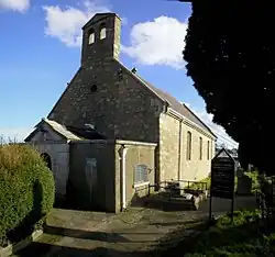 St. Nahi's stands on the grounds of the original monastery, having been refurbished several times, most recently in 1910, after a period when it was in use as the parish boys' school. Following storm damage to the roof, a major refurbishment was carried out by the then Rector of the Parish, Canon William Monk Gibbon (father of the poet of the same name), who is buried in the grounds of the church. A plaque erected after the refurbishment reads: