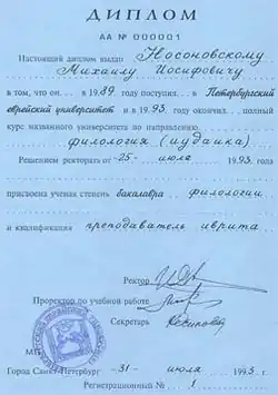 Leningrad Jewish University was established in 1989 as a continuation of the Baron Günzburg's Courses for Oriental Studies (1907-1917) and the Petrograd / Leningrad Jewish University (1919-1925). The latter was closed by the Soviet Authorities as "unnecessary" in 1925. The new Leningrad Jewish University was created in 1989 during the new Soviet policy of Perestroika by enthusiasts and Jewish Activists, Ilya Dvorkin (the first Rector of the university), Veniamin Lukin, Khava Korzakova, and others. During its first year '89/90 only evening classes were offered of Hebrew, history, Torah studies, as well as seminars on Ethnography, Linguistics and Local History, and several others.[1]