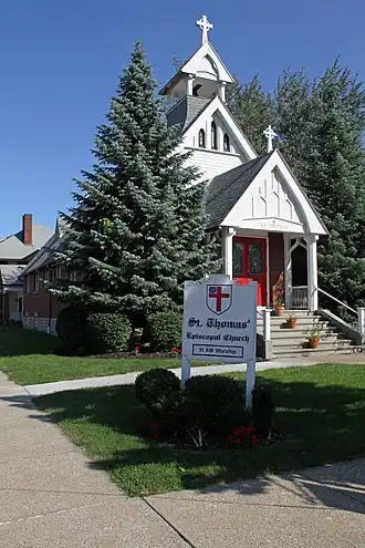 St. Thomas' Episcopal Church (St. Thomas' Guild Hall ; St. Thomas' Rectory) is a parish in the Episcopal Diocese of Ohio. Its historic Gothic Revival style church, at 214 E. Second Street in Port Clinton, Ohio, was built in 1896. It was added to the National Register of Historic Places in 1999.