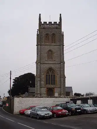 The Anglican church is dedicated to St Bartholomew, and is thought to have been built by the monks who were displaced from Athelney Abbey when it was dissolved by King Henry VIII of England in 1539.[2] It stands on the site of an earlier fortress.[3]