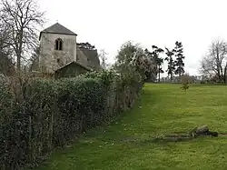 To the east of the church is a detached tower dating from the 14th century. Some restoration was carried out on it during the 19th century. It has a square plan and is surmounted by a slate pyramidal roof with a weathervane. The tower is in three stages. In the lowest stage is an arched entrance on the west side. There are square-headed windows in the east and south sides in both the lowest and the middle stages. The upper stage contains two-light arched bell openings on the north, south and east sides. The tower has been designated separately as a Grade I listed building.[3]