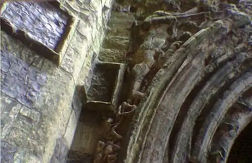 The site was not immune to natural disasters and in the 13th and 14th centuries there were incidents where violent storms on the coast forced the sea to break through the dunes, causing damage to the abbey. In 1287 to save the horses, they had to be brought from the stables to shelter on higher land in the nave of the church.[23] The abbey also remained vulnerable to hostile incursions by water and in 1327 by royal licence the site was enclosed by a wall with battlements, isolated traces of which still survive.[23]