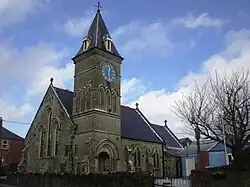 The church dates from 1875 to 1877 by the architect T. R. Saunders.[1] The tower was added in 1911.