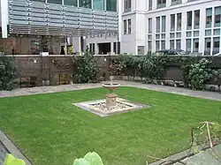 St John Zachary[1] (meaning "St John, son of Zechariah", i.e. John the Baptist)[2] was a church, first mentioned in official records in 1181,[3] within the City of London, England, on the north side of Gresham Street, Aldersgate.[4] Its vicar from 25 May 1424[5] to an unknown date was William Byngham, the founder of England's first teacher training college.[6] It was destroyed in the Great Fire of London in 1666[7] and not rebuilt,[8] with its parish being united with that of St Anne and St Agnes[9] by Act of Parliament in 1670[10] –an arrangement that lasted until the 20th century.[11] Its site is now a garden,[12] first made by the fire watchers in 1941.[13] Partial records survive at IGI.[14]
