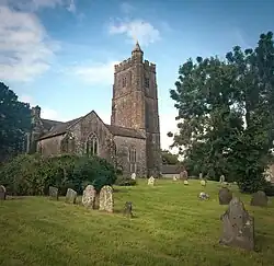 In the chancel are the tombs of Sir Nicholas de Carew (died 1311, who built the Edwardian castle) and Sir John and Elizabeth Carew. There are memorials to members of the Allen and other leading families. The west window is an 1857 Crimea memorial.[1]