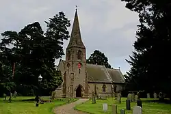 The church is in sandstone with stone slate roofs. It consists of a nave, a lower chancel with a north organ chamber and vestry, and a southwest steeple. The steeple has a tower with three stages, buttresses, and a porch with a pointed arch and a double-chamfered surround and a hood mould. To the west is a stair tower, the bottom stage contains a cusped lancet window, and above are rectangular lights, clock faces with hood moulds, paired bell openings, a chamfered string course, and a band of trefoil tracery, and the tower is surmounted by a broach spire with a wrought iron weathervane.[2][3]