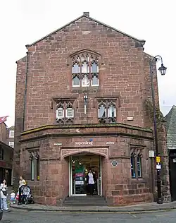 The chapel was built in about 1300 for Simon de Albo, the abbot of St Werburgh's, Chester. It was used for a period as the church of the parish of St Oswald, then closed as a church and conveyed to the Mayor and Assembly of Chester in 1488. In 1545 an upper floor was inserted and it was used as the Commonhall and Wool Hall. The building was used for staging plays from around 1750, then further converted as the New Theatre in 1773 and the Theatre Royal in 1777–78. James Harrison modified it again into a hall for concerts and entertainments in 1854–55, when it was known as the Music Hall.[1] It was later used as a cinema, and then as a shop. The alleyway to the side of the building, from Saint Werburgh Street to Northgate Street, is called Music Hall Passage.[3]