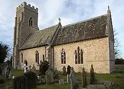St Nicholas Church is the parish church of the village of Kennett in east Cambridgeshire. It has been dedicated to St Nicholas since the 13th century. The building consists of a chancel and an aisled nave with north porch and west tower. The oldest parts of the building are the nave and north porch which were built in the 12th century, with the chancel dating from the 13th century. Its impressive 15th-century tower dominates the local landscape and contains three bells, including one from the 13th century.[1]