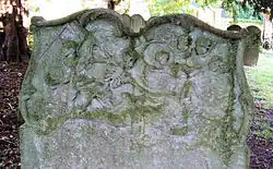 A large churchyard surrounds the church, but when this became full it was extended on to land on the opposite side of Church Lane, which was donated by the owner of Wakehurst Place. This extension, made in 1944,[31] prevented the ancient gravestones in the original churchyard being removed to make way for new burials.[8] As a result, many old and unusual gravestones survive, including one which depicts a woman being stabbed with a lance by a skeleton, as angels watch.[8]