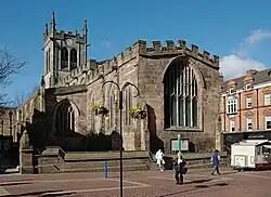 St Peter's in the City is a Church of England parish church in the city of Derby, Derbyshire, England. It is one of Derby's city centre churches which is in full use for worship. The church building dates from the 11th century. The tower has a peal of eight bells, which are rung before the Sunday morning services.[1]