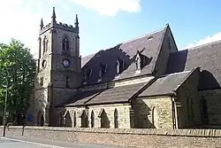 St Peter's Church is in Windmill Street, Macclesfield, Cheshire, England. It is an active Anglican parish church in the diocese of Chester, the archdeaconry of Macclesfield, and the deanery of Macclesfield.[1] It forms a team ministry with three other Macclesfield churches: St Michael, All Saints, and St Barnabas.[2] The church is recorded in the National Heritage List for England as a designated Grade II listed building.[3] It was a Commissioners' church, having received a grant towards its construction from the Church Building Commission.[4]