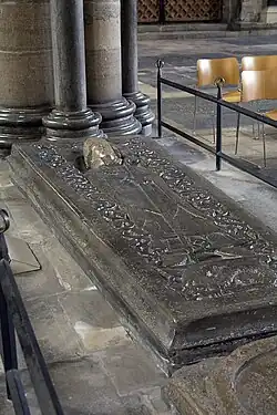 Immediately everything was reversed. The draft charter of liberties was marked as cancelled because of archbishop's death.[69] John had changed his mind completely and on 5 August 1205, only three weeks after the archbishop's death, he appointed a replacement dean of Wolverhampton: Henry, the son of his Chief Justiciar, Geoffrey Fitz Peter, 1st Earl of Essex.[71] Abandoning any pretence of reform, the terms of Henry's appointment specified that he was to hold the deanery with its liberties and honours exactly as his predecessors. Well-connected to all the centres of power in the kingdom, he seems to have held the post of dean for nearly two decades. It is often claimed that the new church was begun early in the 13th century,[72] probably during the interregnum, meaning that it would have been constructed largely under Henry. However, the building's Historic England listing now suggests that the earliest part of the present building, the crossing and south transept, date from the late 13th century.[73]