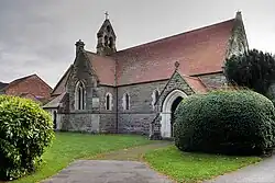 The church is built of pitch-faced stone with a red tile roof. It has a cruciform plan, consisting of a nave and a chancel, transepts, an organ chantry and a porch. Between the nave and the chancel is a bellcote containing two bells. It has stained windows with glass by Clayton and Bell and James Powell and Sons. Inside, there is a wooden reredos dating from 1934, and a marble font.[3][4]