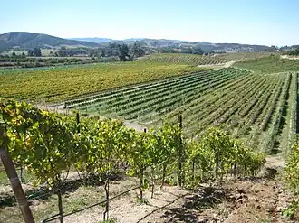 The AVA petition was submitted from viticulturists and vintners in the area under the direction of J. Richard Sanford (Sanford Winery), Bryan Babcock (Babcock Vineyards and Winery), and Wesley D. Hagen (Vineyard Manager of Clos Pepe Vineyards).[1] Wineries and locations in Sta. Rita Hills were featured in the 2004 U.S. film Sideways. Sideways Fest is an annual three-day event hosted by the Sta. Rita Hills Wine Alliance celebrating the anniversary of the movie's filming in the Santa Ynez Valley.[7][8]