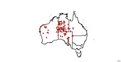 The species has a disjunct range across arid western and central Australia, with occurrence records in Western Australia, South Australia, the Northern Territory, New South Wales and Queensland.[2][4]