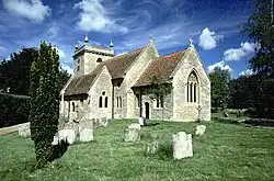 The oldest part of the Church of England parish church of St John the Baptist is the 12th-century Norman baptismal font. Some 15th-century Perpendicular Gothic features survive, including the north aisle, three-bay north arcade and the chancel arch.[5][6] The church has a west tower that was built in 1737. In 1875 the church was rebuilt and enlarged to designs by the Gothic Revival architect EG Bruton, who added a south aisle and three-bay south arcade.[5][6]