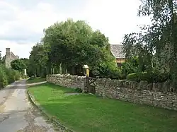 The village has a small church, whose original dedication is unknown. The church was probably built by Roger Little, who in about 1175 had married Margery, the daughter of John de Sudeley, and built the adjacent moated manor house.[3] The original Norman structure was heavily restored by Thomas Collins in 1860-61. The chancel was rebuilt. The church is noted for its Late Norman north door, with chevron mouldings, and a Norman chancel arch, leaning outwards, also with chevron moulding. The nave roof was rebuilt in 1923-4 by Sir Philip Stott. The font is a Norman bowl, remodelled into an octagonal shape in the 14th century. Most of the furnishings in the church date to the 1860-1 restoration. By agreement among the parishioners, graves in the churchyard are not marked by headstones. A guide to the location of burials is provided within the church.