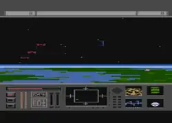 The game opened with the player in orbit above Rylos, being attacked by the fighters. After defeating this initial force, pressing space opened a display of the local solar system, showing the multiple planets, the Frontier, and any attacking fleets. The joystick is used to move between the various objects on the screen, which can be selected in order to warp to them. Fleets could be attacked at any point, but there was an advantage to attacking them while they were attempting to breach the Frontier; in this case the player immediately faced the command ship in a defenceless state, and destroying it before it burned its way through the Frontier would leave the rest of the fleet stranded on the other side.