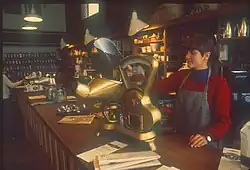 The first Starbucks store was located in Seattle, at 2000 Western Avenue, from 1971 to 1976. The café was later moved to 1912 Pike Place.[13] During this time, Starbucks stores sold just coffee beans and not drinks.[14] In its first two years of operation, Starbucks purchased green coffee beans from Peet's Coffee & Tea. In 1973, Alfred Peet stopped supplying Starbucks and helped train their new Roastmaster, Jim Reynolds.[15]