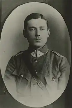 After graduation, he voluntarily joined the Lithuanian Army in May 1919. He was sent to study at the War School of Kaunas. Putvinskis graduated with the second class in December 1919.[5] He was promoted to lieutenant and assigned to the 1st Hussar Regiment. In July–October 1920, he saw action in the Polish–Lithuanian War near Rykantai, Eišiškės, Lentvaris, Vilnius.[5] He was awarded the Order of the Cross of Vytis for intelligence gathering behind the Polish lines.[2] In February 1921, he became regiment's adjutant. At the time, the regiment was commanded by Povilas Plechavičius.[6]