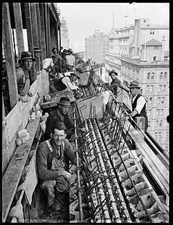 Construction eventually commenced in February 1925 and 48 Martin Place was completed late in 1928, and was officially opened by the Premier of New South Wales, the Hon, T. R. Bavin, on 13 December 1928. The roof provided panoramic views over the harbour and the city in 1928, and the whole building symbolised the optimism and forward thinking of the 1920s prior to the great Depression, in addition to the prestige, security and strength of the Bank. The location, size and grandeur of the building confirmed a belief in the stability and endurance of the Australian economy in general, and the distinguished place of New South Wales in that development in particular.[2] At the time of its construction, the building was the most expensive in Australia, having been constructed at a cost of £1,500,000.[2]