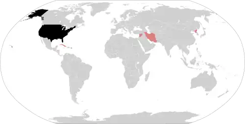 Iraq, then under the rule of Saddam Hussein, was added to the list on December 29, 1979.[41] Iraq had sheltered several militant groups during the 1980s, such as the Palestinian Liberation Front, and others.[42] It was removed in February 1982[43] to allow U.S. aid to Iraq while it was fighting Iran in the Iran–Iraq War.[44][45] It was re-added on September 13, 1990, following its invasion of Kuwait.[46] In 1993, Iraq's intelligence service attempted to assassinate former U.S. President George Bush and Kuwait's Emir with a car bomb, but Kuwaiti authorities foiled the plot and arrested 16 suspects, including two Iraqis.[42] Following the 2003 U.S.-led invasion of Iraq and toppling of President Saddam Hussein, Iraq was removed from the list on October 25, 2004, after receiving assurances from the Iraqi interim government that it will not support acts of international terrorism in the future.[47]