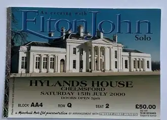 The Stately Home Tour was a 2000 concert tour by Elton John. After completing the Medusa Tour, Elton decided to tour some of the stately homes of Europe, mainly covering England and Germany. The tour started on 27 May 2000 in Bedfordshire and ended on 30 July 2000 in Edinburgh, Scotland.[1]