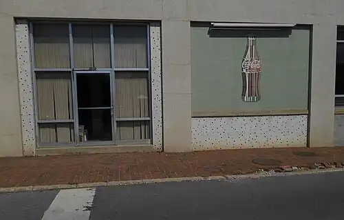 The Staunton Coca-Cola Bottling Works is a historic building in Staunton, Virginia, that formerly housed the Staunton Coca-Cola bottling plant. Originally constructed in 1927, its modernist exterior, featuring tiles in a speckled pattern (suggesting carbonation) and a mosaic image of a Coca-Cola bottle, dates from 1964. Currently vacant, the building remains a Staunton landmark, located approximately one-half mile north of Beverley Street, across from the Staunton Public Library. Its one-time president, W. L. Sams, was known as "the Coca-Cola King of the [Shenandoah] Valley." The facility moved to its present location on Christians Creek Road in the 1970s.[1]
