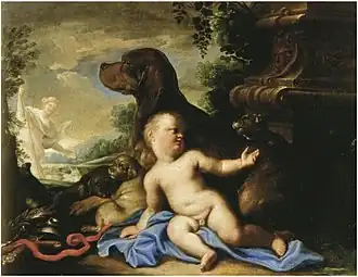 His works are characterized by their careful observation, brilliant color schemes, softness of touch and the minute attention to detail.[5] He was particularly skilled in depicting animals in an expressive and realistic manner. He likely had access to the series of drawings of animals by the Italian animal painter Sinibaldo Scorza which was present in his brother in law Domenico Piola's workshop.[4]