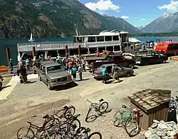 A network of trails through the mountains east of Stehekin provide access by foot from the Methow Valley area.[20] The Chelan Summit trail starts near the nexus of Grade Creek Road northwest of Chelan and provides a continuous trail all the way into Stehekin.[21] The Lake Shore Trail, which leads into Stehekin from Prince Creek. The Lady of the Lake ferry services this trail head.[22]
