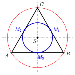 In geometry, the Steiner inellipse,[1] midpoint inellipse, or midpoint ellipse of a triangle is the unique ellipse inscribed in the triangle and tangent to the sides at their midpoints. It is an example of an inellipse. By comparison the inscribed circle and Mandart inellipse of a triangle are other inconics that are tangent to the sides, but not at the midpoints unless the triangle is equilateral. The Steiner inellipse is attributed by Dörrie[2] to Jakob Steiner, and a proof of its uniqueness is given by Dan Kalman.[3]