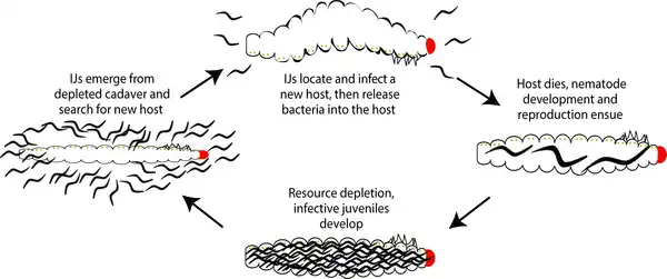 - ^ a b Akhurst, RJ; Dunphy, GB (1993). "Tripartite interactions between symbiotically associated entomopathogenic bacteria, nematodes, and their insect hosts". Parasites and Pathogens of Insects. Volume 2: Pathogens. Academic Press. ISBN 978-0120844425.
