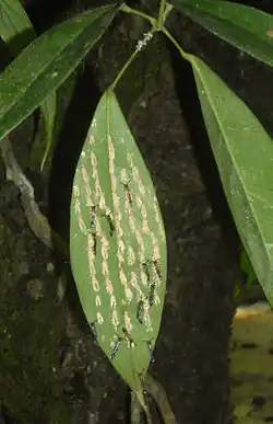 - ^ Hansell, M. "'Nest Construction in the Subsocial Wasp Parischnogaster mellyi (Saussure) Stenogastrinae (Hymenoptera)'".Insectes Sociaux 28(2): 208–216.