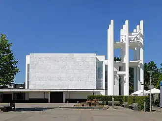 52°23′39″N 10°45′15″E / 52.39429°N 10.75409°EStephanuskirche (Evangelical Lutheran Church of St. Stephen) also known as Detmerode Church is a church and parish center in Wolfsburg, Germany designed by Finnish architect Alvar Aalto in 1963. Completed in 1968, the building is a prominent example of International modernism in Germany.[1]