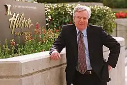 Bollenbach was the co-chairman and chief executive officer of Hilton Hotels Corporation beginning in February 1996. He was the first person outside the Hilton Family to hold this position.[18] Bollenbach aimed to expand Hilton's gaming holdings through acquisitions, especially in Atlantic City, where Hilton had no presence.[19] Bally Entertainment, with five casinos, including two in Atlantic City, was a natural target. Its midscale clientele, heavy on slots revenue, would provide balance to the volatility of Hilton's high-end baccarat players.[20] Hilton beat out ITT Corporation with an offer of $2 billion in stock plus $1 billion of assumed debt,[19] and the purchase closed in December 1996.[21] Following the merger between Ladbrokes plc and Hilton Group plc in the United Kingdom, Peter George served as group chief executive of Hilton Group plc. George and Bollenbach worked to create the strategic alliance in 1997 between Hilton Hotels Corporation and Hilton International (the lodging subsidiary of Hilton Group.) This alliance ultimately paved the way for the 2006 acquisition of Hilton International by Hilton Hotels Corporation.[22] In 2007, Bollenbach left after making the sale of Hilton to The Blackstone Group for $26 Billion.[23][17]