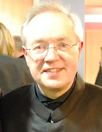 Stephen John Cleobury was born in Bromley, Kent, the son of John F. Cleobury and Brenda J. Randall.[4] He sang as a chorister at Worcester Cathedral under Douglas Guest then Christopher Robinson.[4] He was organ scholar at St John's College, Cambridge, under the musical directorship of George Guest, and sub-organist of Westminster Abbey before becoming the first Anglican master of music at the Catholic Westminster Cathedral in 1979.[4][5] In the 1970s, he was head of music at both St Matthew's Church, Northampton, and Northampton Grammar School,[4] where he taught music for four years.[6]