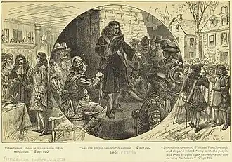 During his time in office, van Cortland remained an adherent of the aristocratic Whig party, especially during Leisler's Rebellion from 1689 to 1691. When Delanoy, the Leisler candidate, was elected to the mayoralty, in place of Van Cortland, the latter refused to deliver up the city seal. It has been said that when a committee came to his home, his wife shut the door in their faces.[5]
