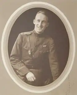 ![]() Stephen Thompson in the uniform he was wearing on February 5, 1918. Note the French Croix de guerre with Palm. | |