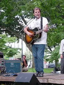In the early 2000s, Earle's album Jerusalem expressed his anti-war, anti-death penalty and his other progressive views, so-called "leftist."[11][20] The album's song "John Walker's Blues," about captured American Taliban fighter John Walker Lindh created controversy.[8][21] Earle responded by appearing on a variety of news and editorial programs and defending the song and his views on patriotism and terrorism.[8] His subsequent tour featured the Jerusalem album and was released as the live album Just an American Boy in 2003.[11]