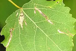 Its wingspan is 5–6 millimetres (0.20–0.24 in). The larvae mine the leaves of their host plant, which typically includes species of aspen including Populus alba, Populus canescens and Populus tremula.