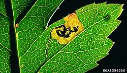The larvae feed on snowy mespilus (Amelanchier ovalis), Cotoneasters, Midland hawthorn (Crataegus laevigata), common hawthorn (Crataegus monogyna), small-flowered black hawthorn (Crataegus pentagyna), common whitebeam (Sorbus aria) and wild service tree (Sorbus torminalis). They mine the leaves of their host plant.[7]