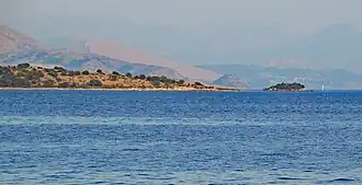 Situated 200 m (660 ft) off the shoreline of Cape Stillo, it is the furthest point south in terms of coastline within the Albanian territory. The rocky islet is sparsely vegetated and has an approximate length of 80 m (260 ft), a width of 110 m (360 ft) and a total surface area of 0.6 ha (1.5 acres).[3][4]