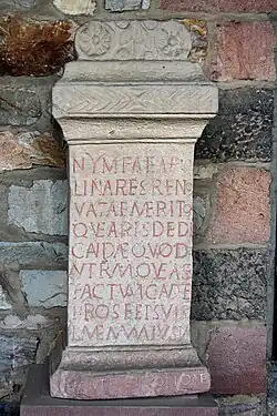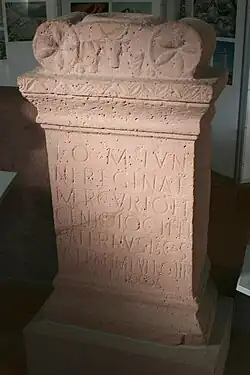 - ^ CIL XIII, 06658 (4, p 107) in Castritius, Helmut; Clauss, Manfred; Hefner, Leo (1977). "Die Römischen Steininschriften des Odenwaldes". Beiträge zur Erforschung des Odenwaldes (in German). 2: 237–308.