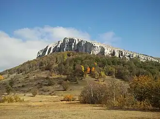 Stol (Serbian Cyrillic: Стол) is a mountain in eastern Serbia, near the town of Bor. Its highest peak has an elevation of 1,156 meters above sea level. Like nearby Veliki Krš and Mali Krš, Stol has a number of pronounced karst formations.[2] There is a mountain hut with around 35 beds, maintained by the mountaineering society Crni Vrh from Bor.[3]