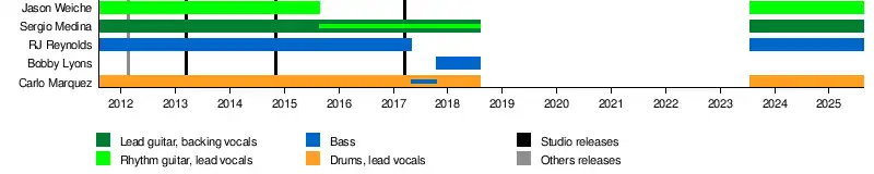- Jason Weiche – rhythm guitar, lead vocals (2011–2015, 2023–present)