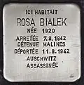 ROSA BIALEK BORN 1920 ARRESTED 7.8.1942 DETAINED IN MALINES DEPORTED 11.8.1942 AUSCHWITZ MURDERED |