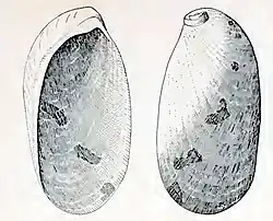 | Original drawing with two views of a shell of Stomatella ungula | |