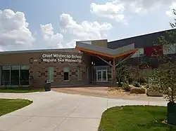 As of September 2017, two elementary schools exist in Stonebridge. On October 22, 2013, the provincial government announced funding for four new P3 facilities in Saskatoon, including a joint-use public/separate school facility in Stonebridge.[16] Greater Saskatoon Catholic Schools revealed in June 2015 that the division's new elementary school in Stonebridge would be named after Kateri Tekakwitha,[17] while Saskatoon Public Schools announced in October 2016 that its new elementary school would be named after Chief Whitecap, one of the founders of Saskatoon.[18] Both schools were completed ahead of the 2017–2018 school year.[19]