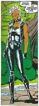 In The Uncanny X-Men #173 (October 1983), Claremont and artist Paul Smith created a new look for Storm, replacing her old costume with a punk fashion aesthetic: A black leather top and pants with spikes and a mohawk.[25] The change in appearance was inspired by the decision of colleague Walt Simonson to shave off his beard and mustache while on vacation with his wife, X-Men editor Louise Simonson. Upon their return, Simonson's daughter, Julie, upset at her father's new appearance, ran from the room.[26] When the editors decided to change Storm's appearance, Smith submitted a number of designs to them, explaining in a 2008 interview: