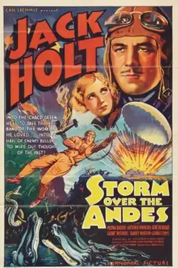 Storm Over the Andes (aka Alas sobre El Chaco) is a 1935 American adventure film directed by Christy Cabanne and starring Jack Holt, Antonio Moreno and Mona Barrie.[1] The low-budget programmer is set against the backdrop of the Chaco War between Paraguay and Bolivia.[2] A separate Spanish-language version, titled Alas Sobre El Chaco, also directed by Cabanne, was made.[3]